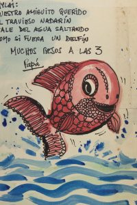 “Punta Carretas, marzo 17 de 1979. Querida My Lai: Recibí tus hermosas cartitas ¡Qué lindos los dibujos del castillo! Me alegra saber que volviste contenta a ayudar a preparar el cumpleaños de Luli. También me deja muy contento saber que pensás en papá y en todos los amigos. Ellos siempre mandan muchos besos para vos, mamá y nuestro sol chiquito ¡que ya cumplirá tres añitos! ¿Le vas a leer la carta, verdad? Mamá me cuenta que juegan juntas, que son muy amigas y no se pelean ¡Qué lindo! Espero más fotos y cartas, y que me cuentes más cosas del castillo. Van muchísimos besos voladores para vos, mamá, Luli, la tía loca y los demás amigos. Y hay unos traviesos ositos que ya se anuncian…hay que esperarlos con paciencia y amor ¡TE QUIERO MUCHO! ¡MU-CHÍ-SI-MO! Chau Papá”