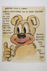 “QUERIDAS MYLAI Y LUANDA. PAPÁ OSO ESTÁ CUIDANDO QUE NO HAGAN REZONGAR A MAMÁ. CON UNA SONRISA LES DICE: -OSITAS, ¡PÓRTENSE MUY BIEN, YA ESTÁN CRECIDITAS! MUCHOS, MUCHOS BESOTES PARA LAS TRES. ¡HASTA MUY PRONTO! PAPÁ”