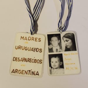 Escapulario de Madres de Uruguayos Desaparecidos en Argentina. María Emilia, Jorge, Mariana, 26-7-1976